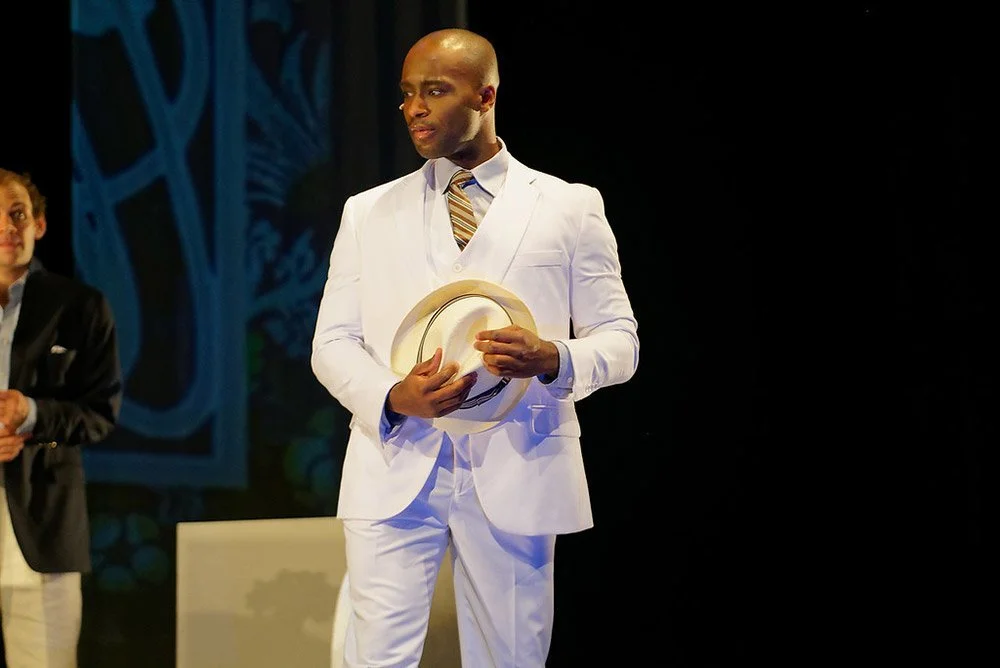 Aquila Theatre's The Great Gatsby . Actor: Joshua Liburd as Gatsby. Photo by Darryl Estrine.