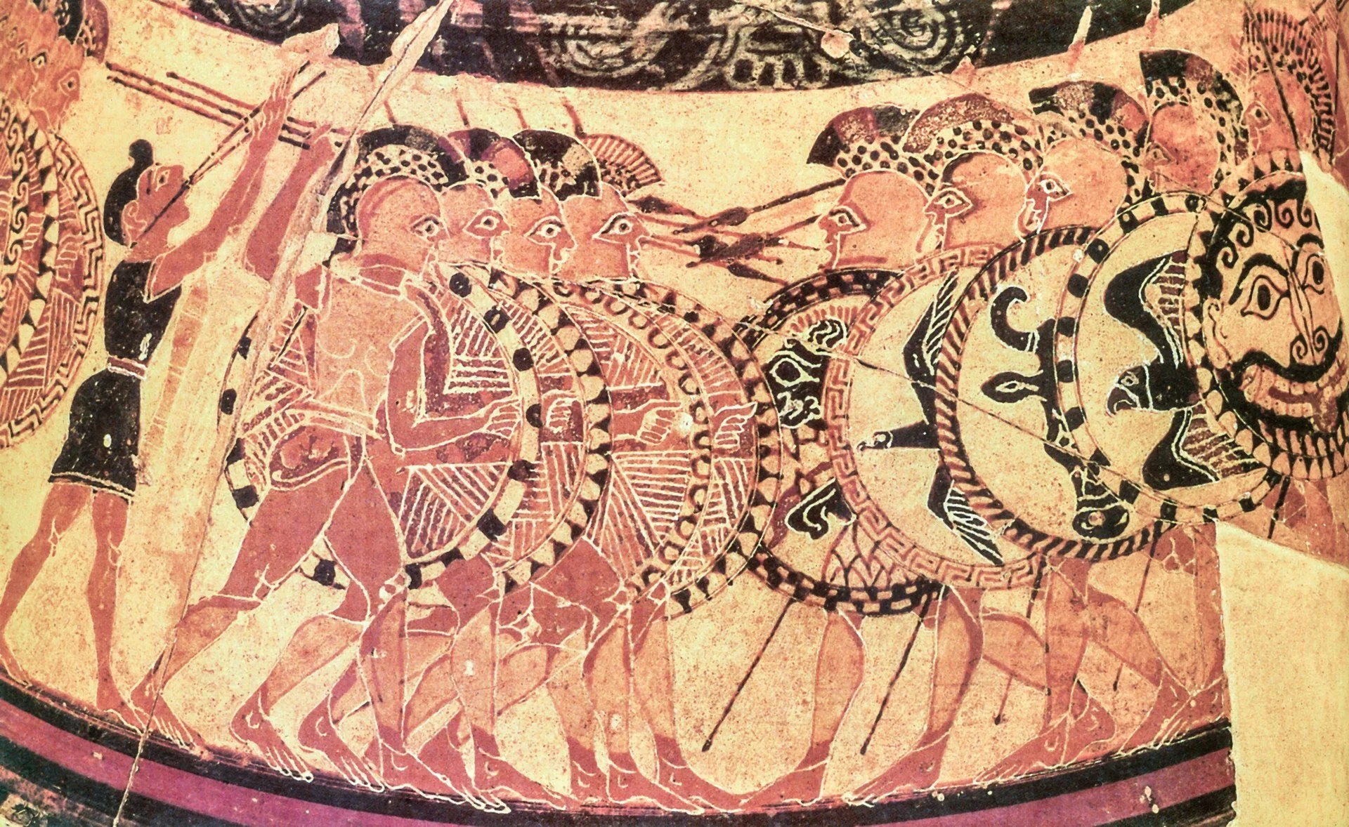 Greek hoplites depicted on the Chigi Vase (National Etruscan Museum, Villa Giulia, Rome inv. No.22679)